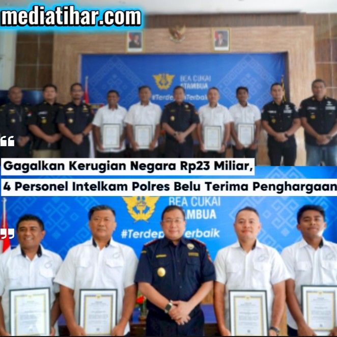 ATAMBUA,Mediatihar.Com – Sinergi kuat dalam memberantas peredaran barang ilegal di wilayah perbatasan membuahkan apresiasi tinggi. Empat personel Satuan Intelkam Polres Belu menerima penghargaan bergengsi Bhakti Chandra Naraya dari Kantor Pengawasan dan Pelayanan Bea dan Cukai (KPPBC) Tipe Madya Pabean (TMP) B Atambua, Rabu (24/4/2024).