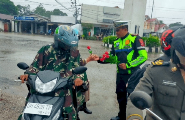 ​”Pembagian bunga ini adalah bentuk cinta dan kepedulian Polri kepada masyarakat. Kami ingin merangkul pengendara agar lebih taat aturan di jalan raya melalui pendekatan yang lebih hangat,” ujar IPTU Muhammad Putra Ramdhoni.