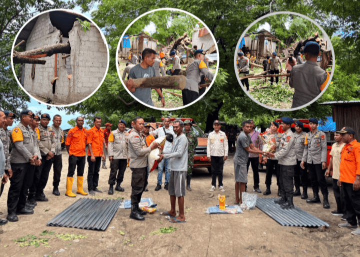 Foto: Aksi Cepat Brimob NTT Evakuasi Puing Rumah Korban Bencana di Desa Jenilu.