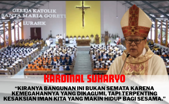 ​”Bapak Andreas Sofiandi dan tim donatur telah membangun gereja ini, semoga semakin menguatkan iman kita untuk memuliakan Tuhan. Semua pengorbanan ini menjadi persembahan terindah bagi Tuhan,” pesan Kardinal.
