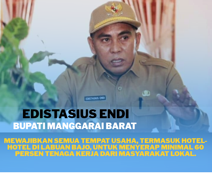 Labuan Bajo, Mediatihar.com – Pemerintah Kabupaten Manggarai Barat (Mabar), Nusa Tenggara Timur (NTT), mengeluarkan peraturan baru yang menegaskan kebijakan penyerapan tenaga kerja lokal. Bupati Edistasius Endi mewajibkan semua tempat usaha, termasuk hotel-hotel di Labuan Bajo, untuk menyerap minimal 60 persen tenaga kerja dari masyarakat lokal.