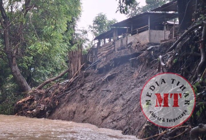 Kondisi diperparah dengan ketiadaan konstruksi bronjong atau dinding penahan tanah di sepanjang aliran sungai, sehingga debit air yang meningkat langsung menghantam fondasi rumah warga.