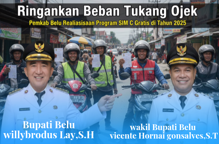 ATAMBUA,Mediatihar.com – Komitmen Pemerintah Kabupaten Belu dalam memperluas akses pasar kerja dan pemberdayaan ekonomi masyarakat kecil terus dibuktikan. Salah satu terobosan yang menjadi sorotan dalam capaian 10 Program Prioritas tahun 2025 adalah penyaluran Surat Izin Mengemudi (SIM) C secara gratis bagi para tukang ojek di wilayah Kabupaten Belu.