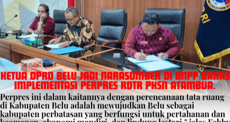Berita nasional Ketua DPRD Belu Jadi Narasumber di BNPP Bahas Implementasi Perpres RDTR PKSN Atambua BERITA, DAERAH, NASIONAL, POLITIK|December 7, 2025by Haman Hendrikus JAKARTA,Mediatihar.Com – Ketua Dewan Perwakilan Rakyat Daerah (DPRD) Kabupaten Belu, Theodorus Febby